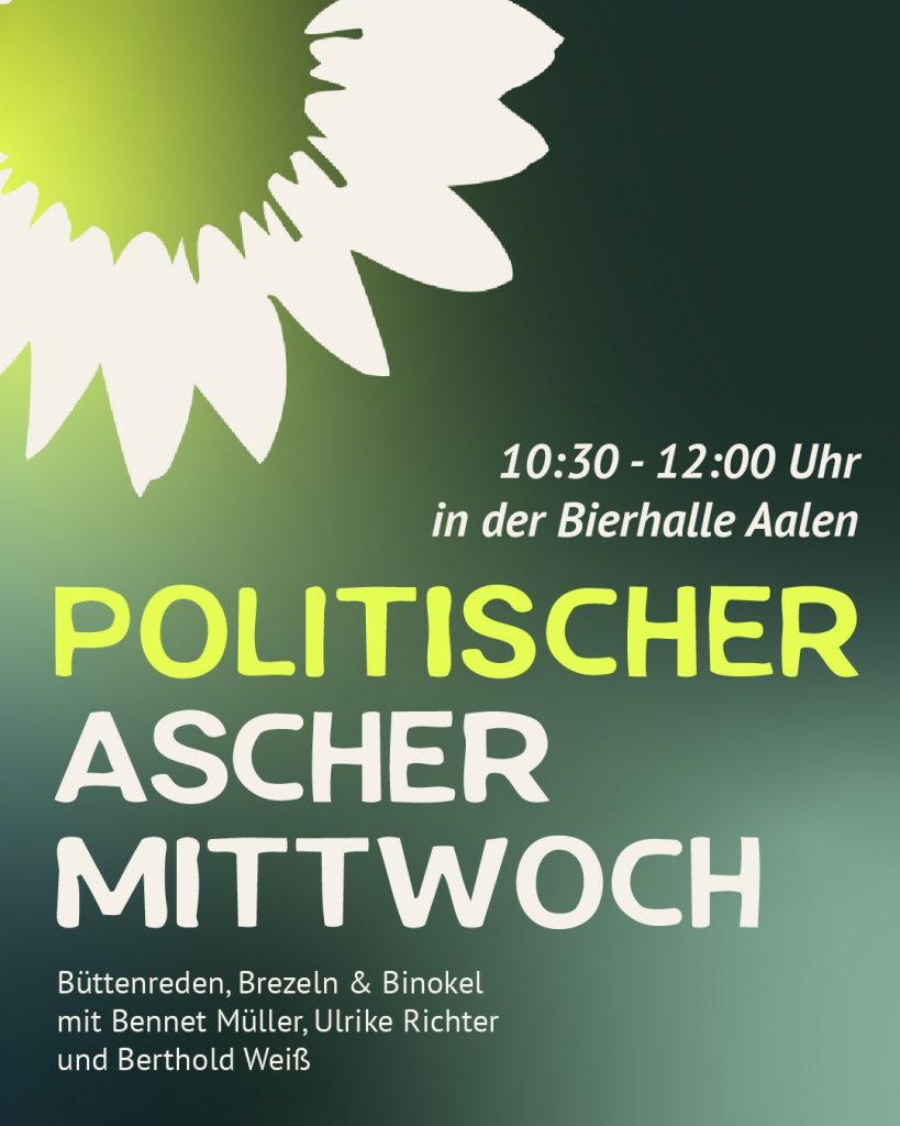 - Politischer AschermittwochWir laden zum Politischen Aschermittwoch herzlich in die Bierhalle Aalen am 18. Februar von 10:30 bis 12:00 Uhr ein. Freuen Sie sich auf ein abwechslungsreiches Programm: Reime vorgetragen von Ulrike Richter und Berthold Weiß: Mit scharfen Pointen und authentischem Humor nehmen die beiden das politische Geschehen… Politischer Aschermittwoch weiterlesen