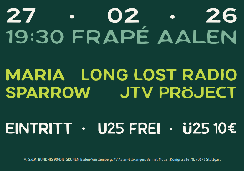 Vier aufregende junge Lokalbands live on stage: Maria, Sparrow, Long Lost Radio und JTV Pröject